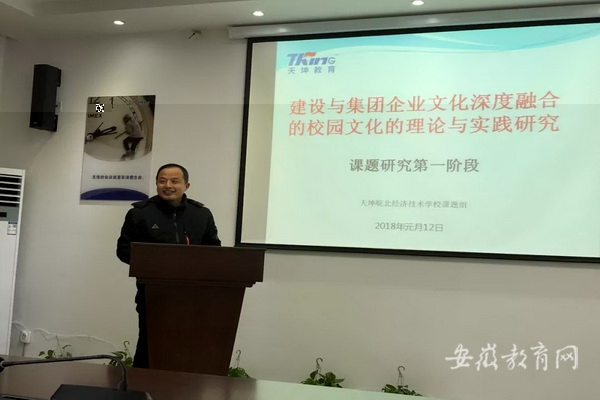 该课题组组长周强山介绍了该课题研究的背景和意义,带领与会同志学习临泉县的泉河文化、人文精神和天坤集团自强不息、厚德载物的企业文化,重点介绍了该校正准备实施的校园文化解决方案。课题组成员殷旭东从管理理念的角度谈了对该校校园文化精髓的认识和理解,以及与企业文化的相融相通之处。课题组其他成员对如何建设与集团企业文化深度融合的校园文化,也分别发表了各自的见解。 打造优秀的、与企业文化深度融合的校园文化,是中职学校教育教学工作的重要任务,是丰富学校内涵建设的重要举措,有助于学生从校园到企业的无缝对接。《建设与集团企业文化深度融合的校园文化的理论与实践研究》是被天坤教育集团批准、认定的重大科研课题,在学校领导的正确指引下,主要由该校办公室和信息中心的同志负责研究实施。原计划待集团批准后,2018年3月正式进入研究阶段,但在集团和学校领导的高度重视及积极推进下,课题组成员热情高涨,提前开启了该课题研究环节第一阶段的工作。(殷旭东)