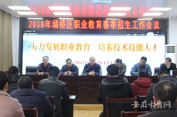 1月12日,埇桥区教育局在二楼会议室召开2018年中职学校春季招生工作会议,全面总结2017年秋季职业学校招生情况,布置2018年春季招生工作任务,各乡镇中心校、完中、初中、职高、民办中学等学校校长近200人参加了会议。 会议指出,2017年,埇桥区中职学校共招生1512人;埇桥区职业学校为做好中职招生工作,专门成立了招生工作领导小组;加大宣传力度,充分利用各种方式进行政策讲解;按照市场需求,调整专业设置;开展市场调研,结合企业用工需求,实行招生就业一体化;制定了对家庭经济困难、身体残疾学生的入学优惠政策,让贫困学子有更多的学习机会;多渠道为初中生提供既能接受高等学历教育,又能成为高技术人才难得的成才之路,增强了中职教育的吸引力。全区各校高度重视中职招生工作,广泛宣传招生政策,行动迅速,为中职学校输送生源,较好地完成了中职招生工作任务。